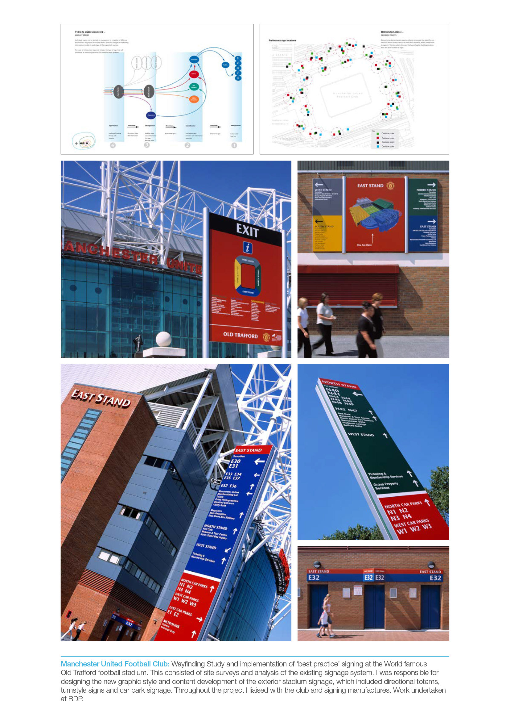 Wayfinding and signage scheme for Old Trafford Stadium.